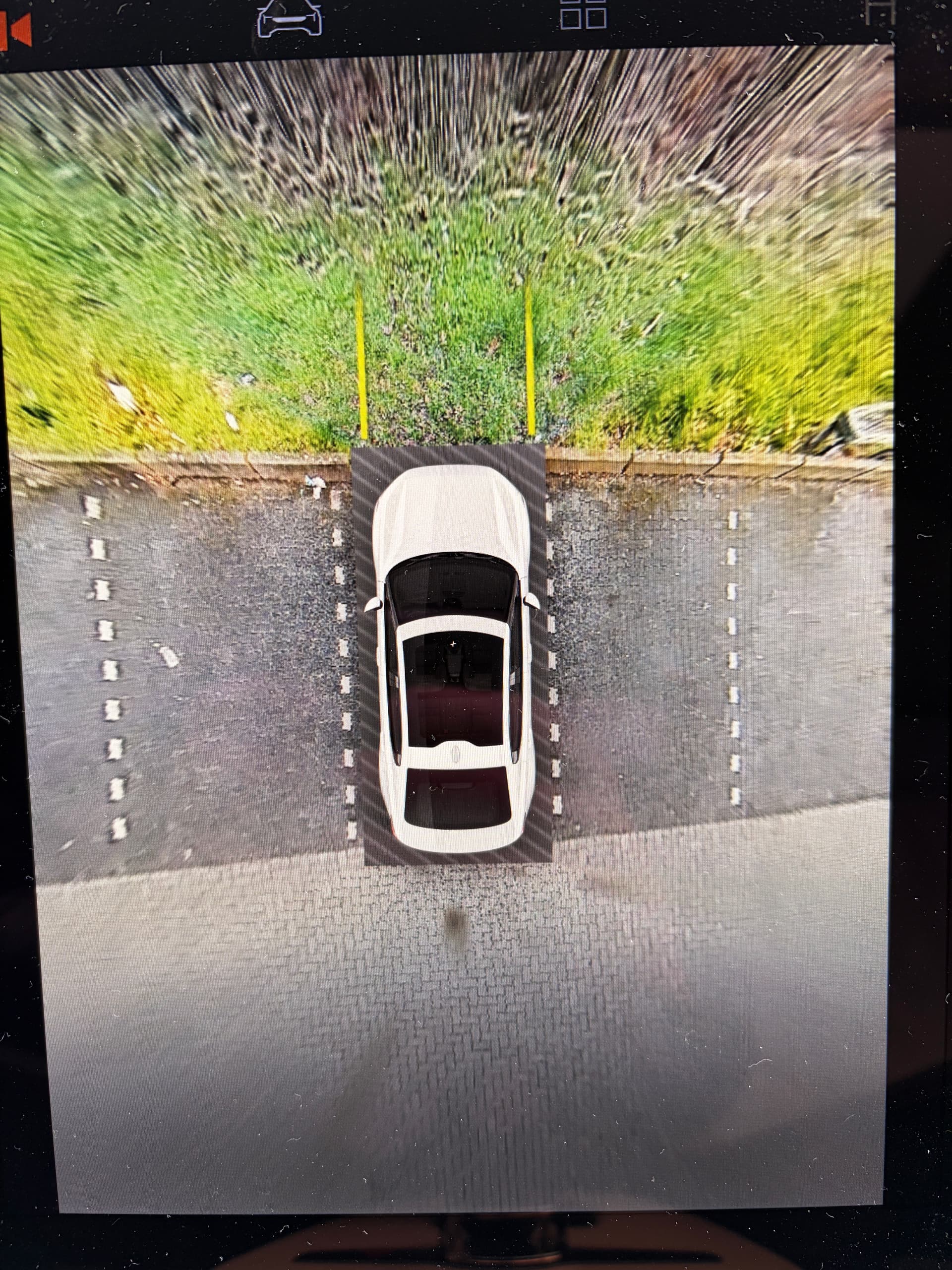 mein neuer Polestar 2 hat irgendwie eine Verzerrung in der Kamera. Schaut mal bitte. Die Parkplätze sind exakt gerade. Die Kamera zeigt aber einen schlimmen Trapez-Effekt.