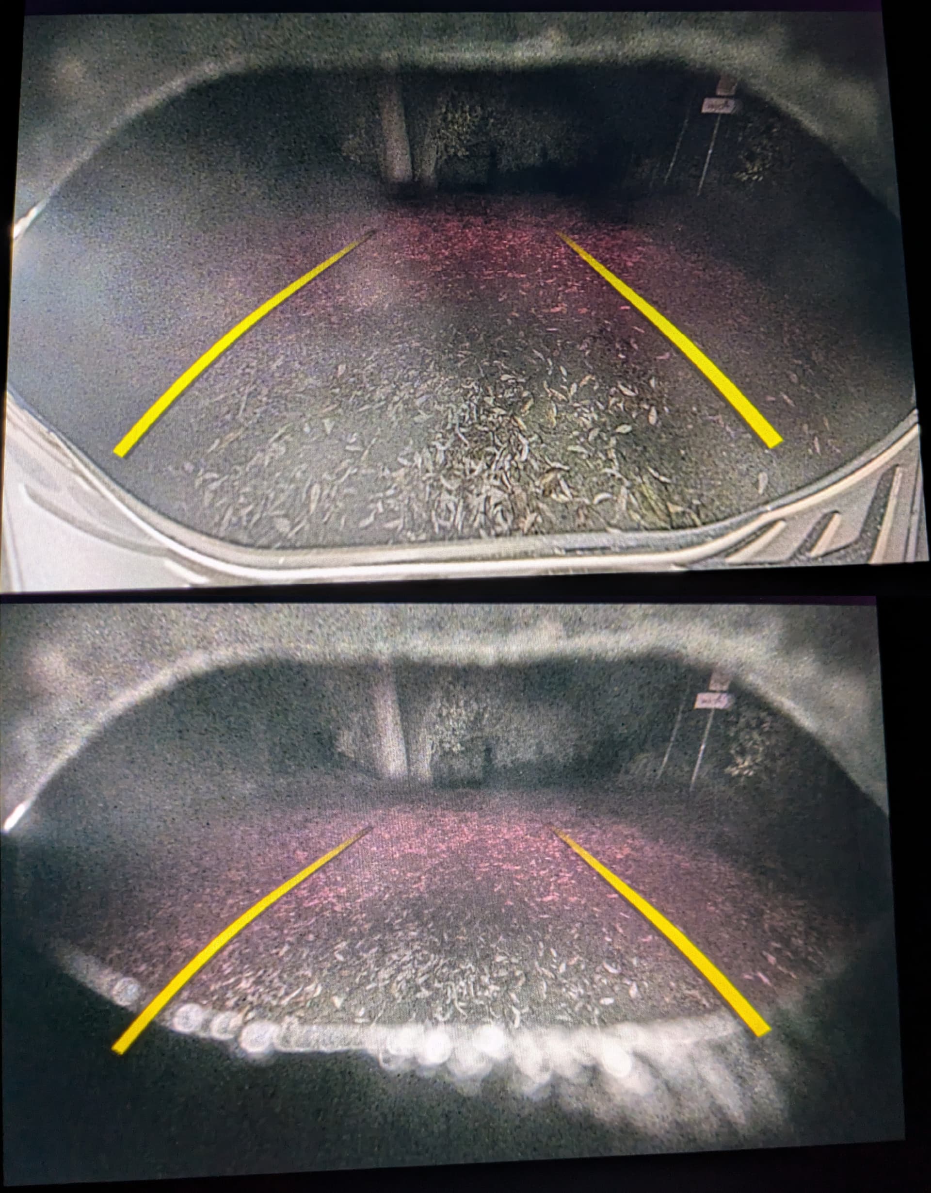 Kappe um das Kennzeichen bei der hinteren Kamera abzuschirmen. Durch die hohe Helligkeit des Kennzeichens wirkt die Kamera dunkler.