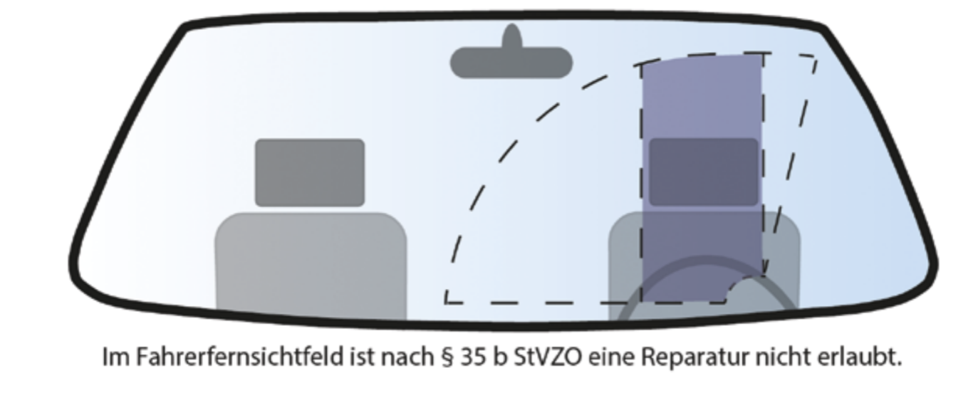 Alles was in diesem Bereich ist, darf nicht repariert werden, sondern zieht einen Ersatz der Scheibe nach sich: