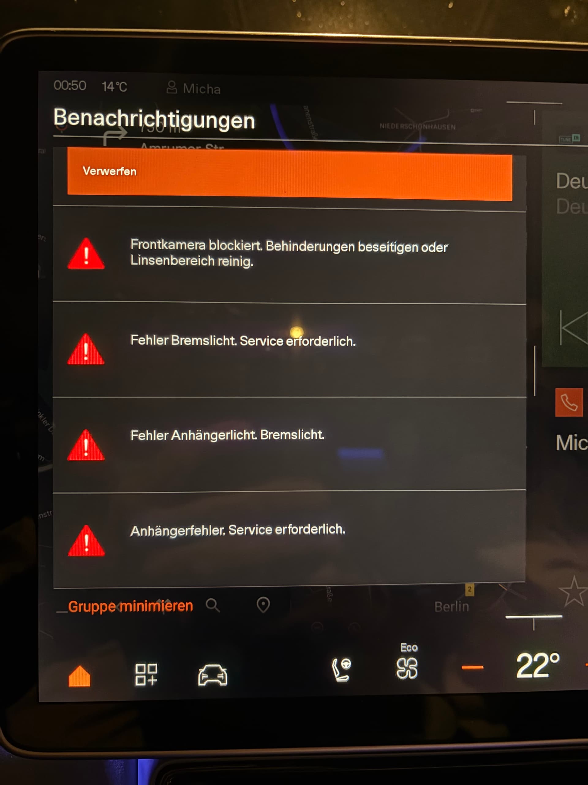 Zur AHK hatte ich diese lustige Fehlermeldungen, nachdem ich bereits 500km mit dem Fahrradträger unterwegs war, mein Fehler war ich habe den Wagen kurz verlassen für eine Toilettenpause, danach dieses Bild