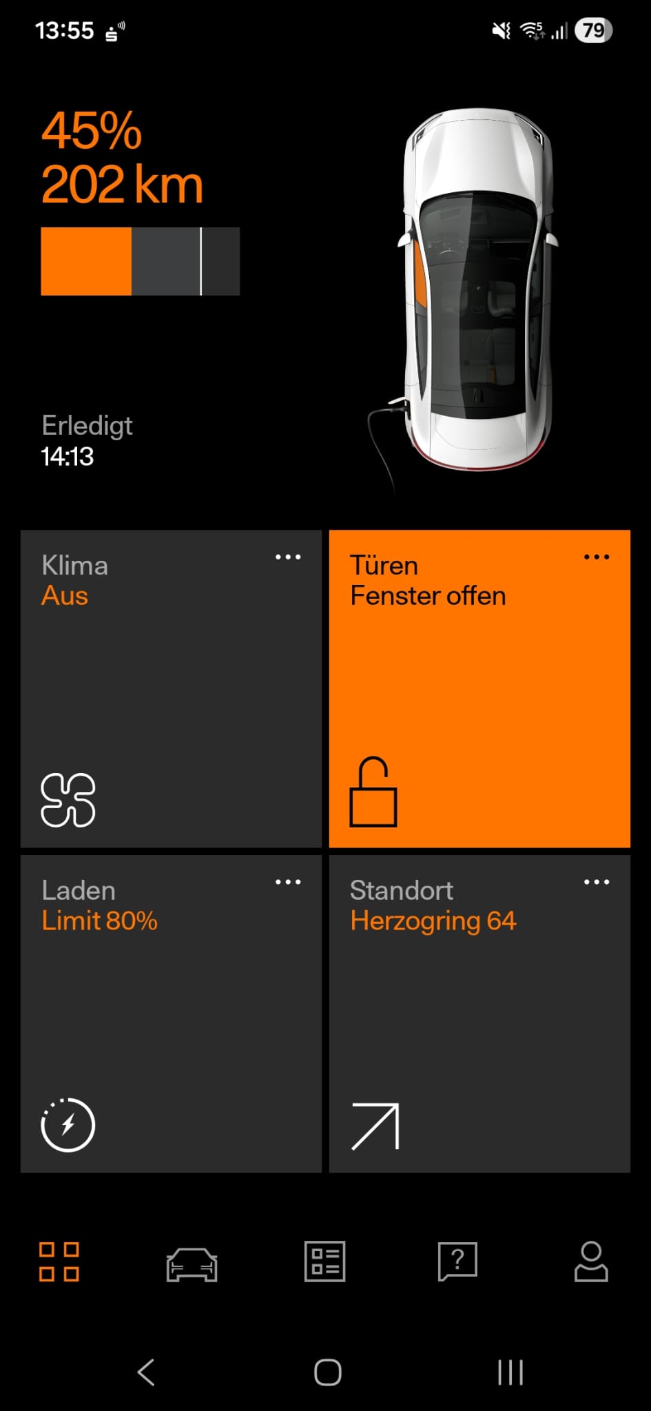 Die Ansicht der verschiedenen Zustände am Auto (Laden, Fenster, Türen) im Home Screen ist auch neu - und ziemlich cool.