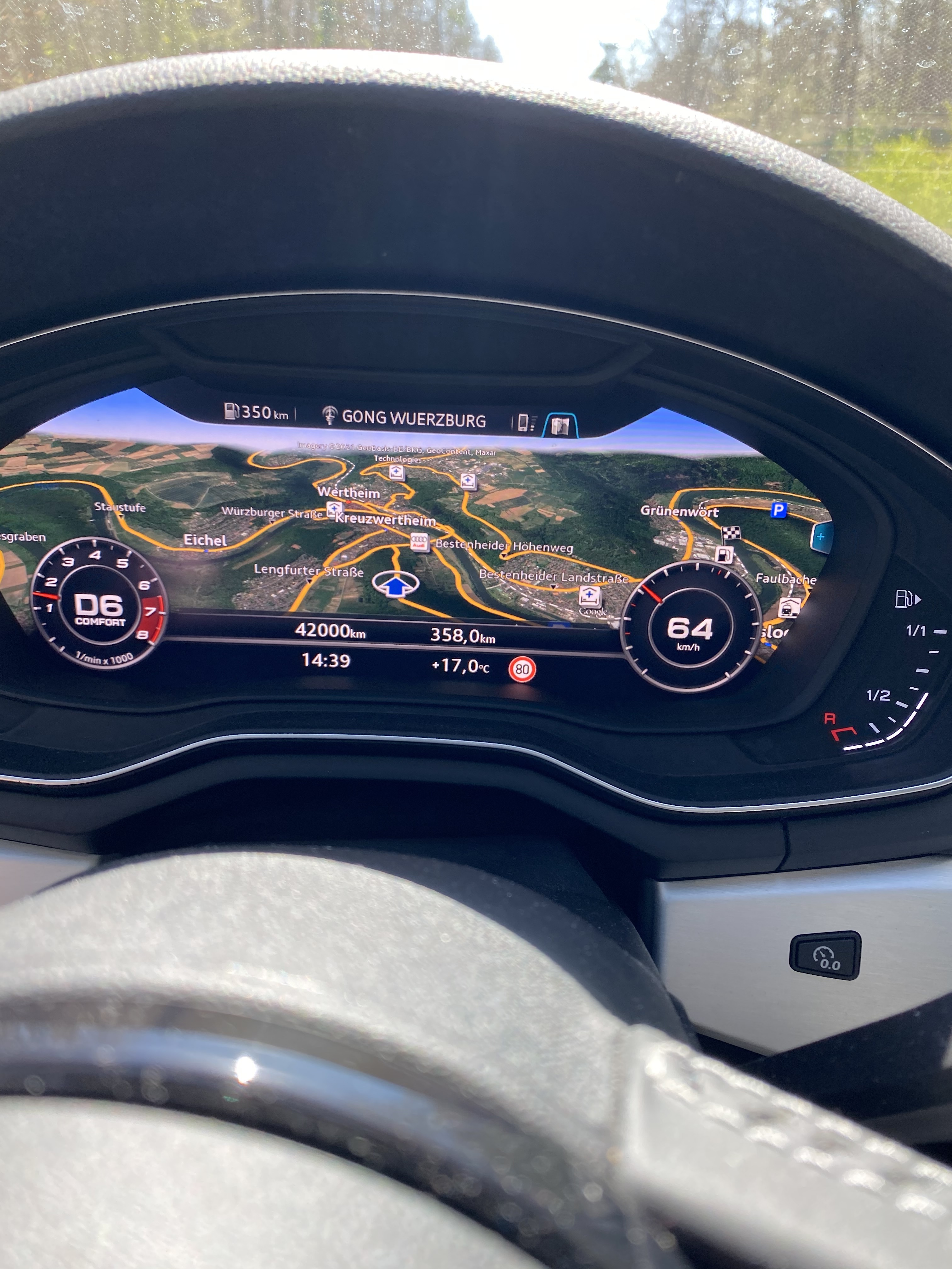 Was ich geliebt habe, war die Anzeige des Abstands des Vorausfahrenden Fahrzeugs (in Sekunden) im Fahrerdisplay. Konnte man auch einstellen. Geht bei PS auch, aber die Ansicht dazu haben sie ja wegrationalisiert. Ein paar Sachen vermisse ich von Audi… des aufgesetzten Service und die künstliche Kastration der Komponenten eher nicht.