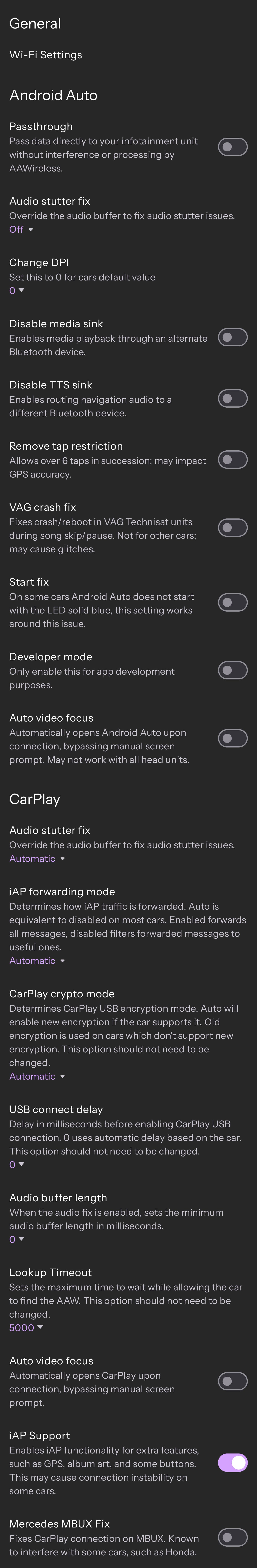 Funktioniert das umstellen der DPI über die AAWIRELESS App mit dem Infotainment?
