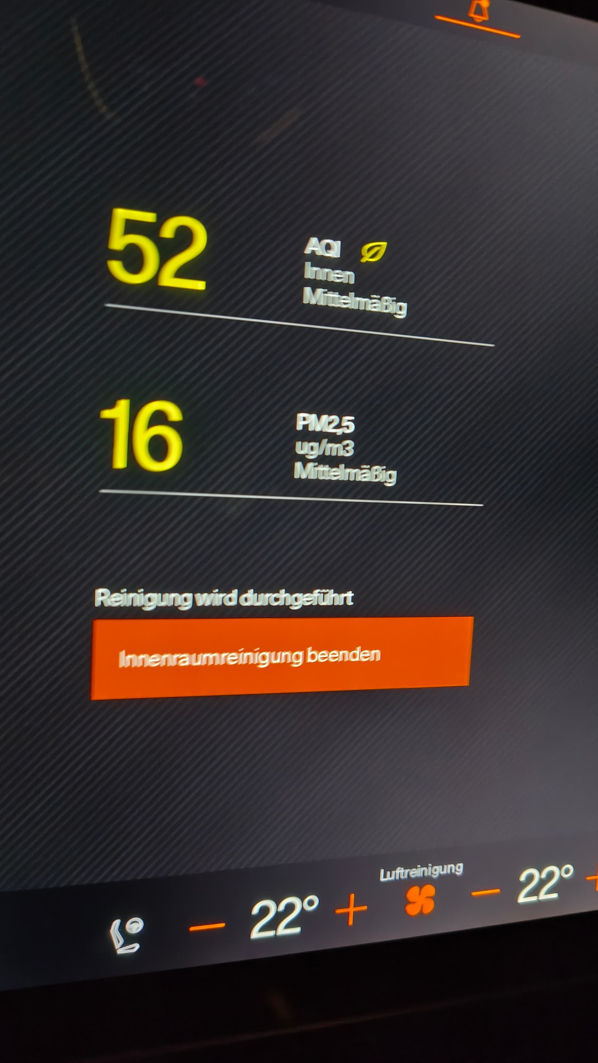 Interessant. Bei mir stehts immer auf default. Wenn der P4 in der Werkstatt ist, kriege ich immer einen EX30 als Ersatzwagen, der zeigt die Werte an. Hier am Land ist gerade durch Hausbrand immer ordentlich Feinstaub in der Luft, es liegt also nicht an besonders reiner Luft.