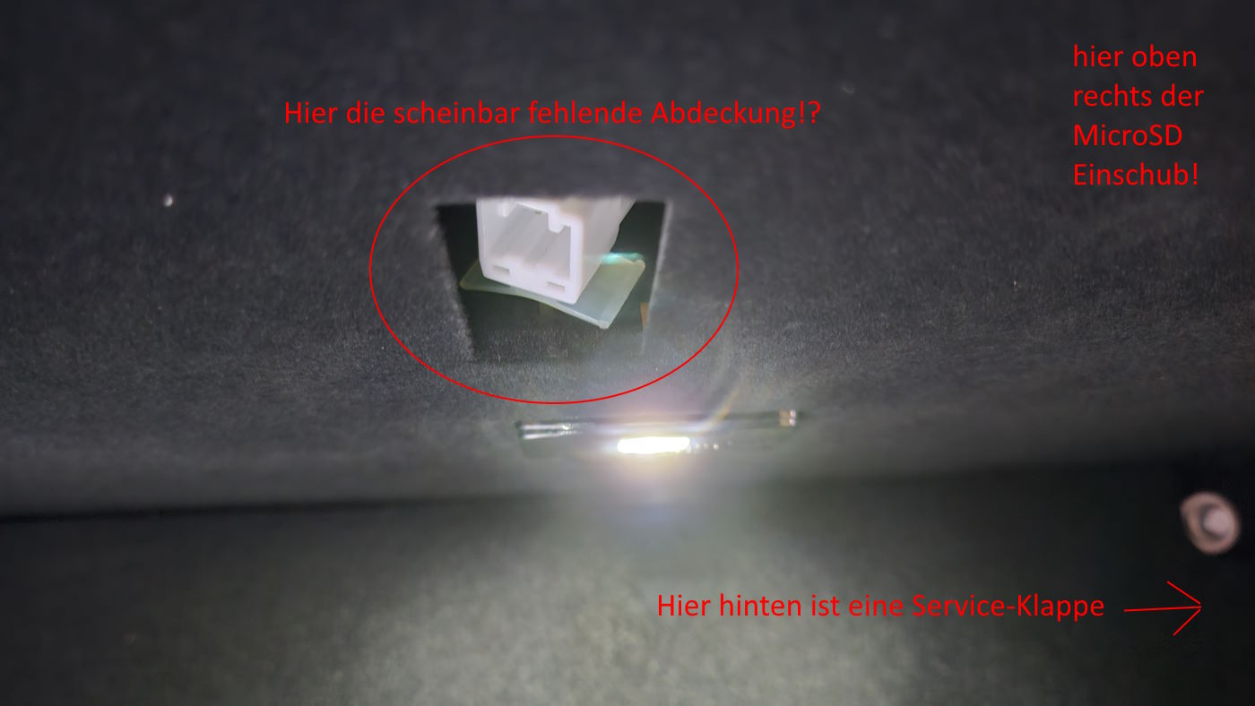 - Offene Steckeröffnung im Handschuhfach (soll laut Support normal sein)