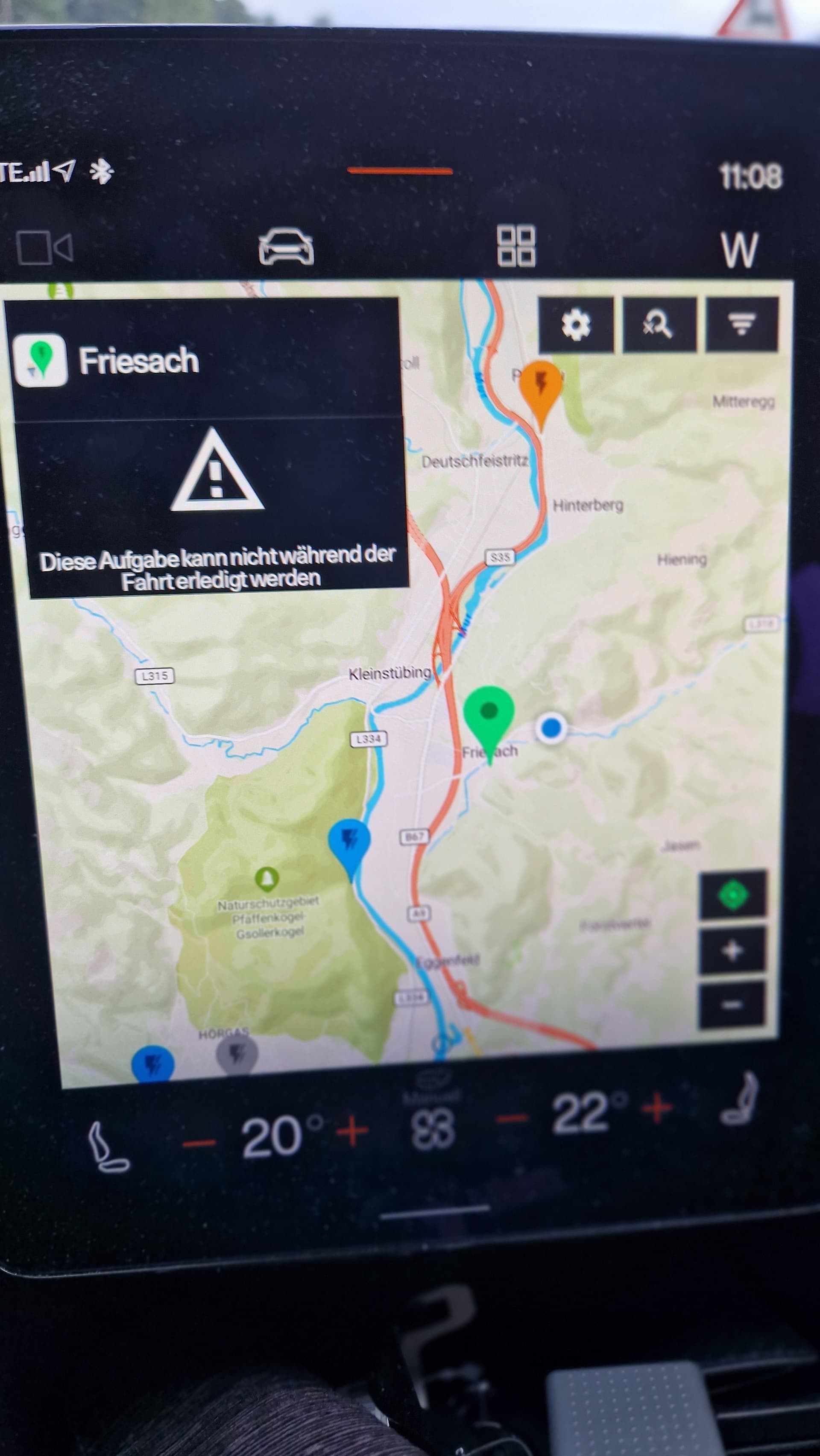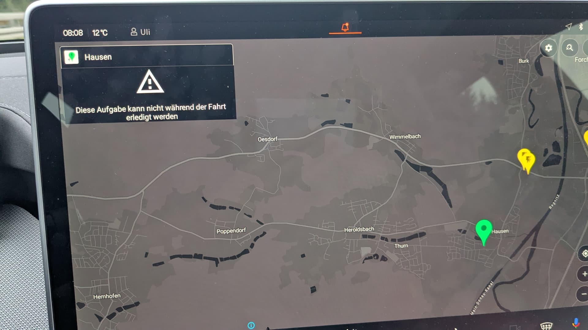 Nach kurzer Zeit sind Features beim Fahren gesperrt (Auswahlliste Ladesäulen, Filter, …)
