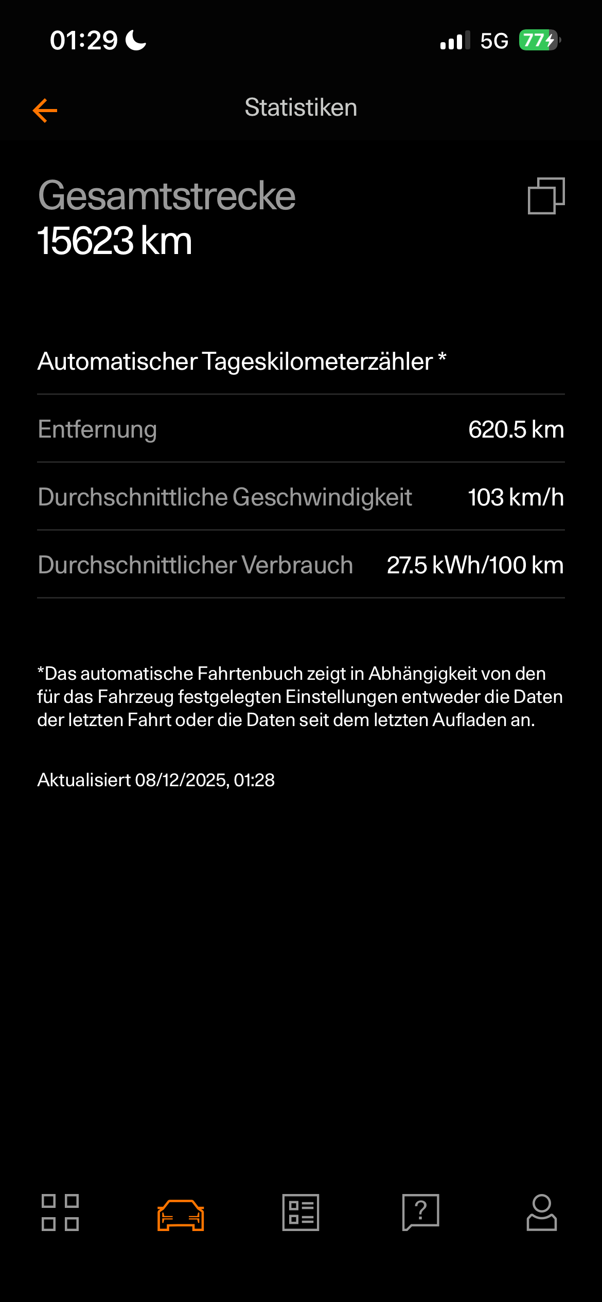 Heute lag der Verbrauch bei gleicher Temperatur (2 °C), Strecke und Fahrweise jedoch nur bei 21,3 kWh. Sonst bin ich bei über 32 kWh. Wurde da heimlich etwas per OTA in unsere Autos eingeschleust?