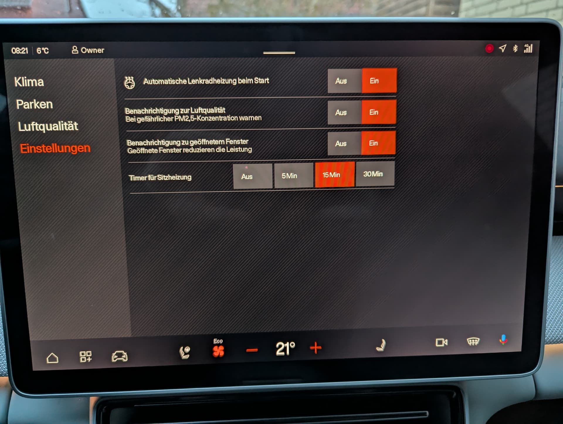 Was aber eine Option ist: ganz rechts unten im Screen (neben dem Google-Shortcut) ist immer der „Maximal enteisen“-Button. Der aktiviert alle Heizungen, auch die der Spiegel: