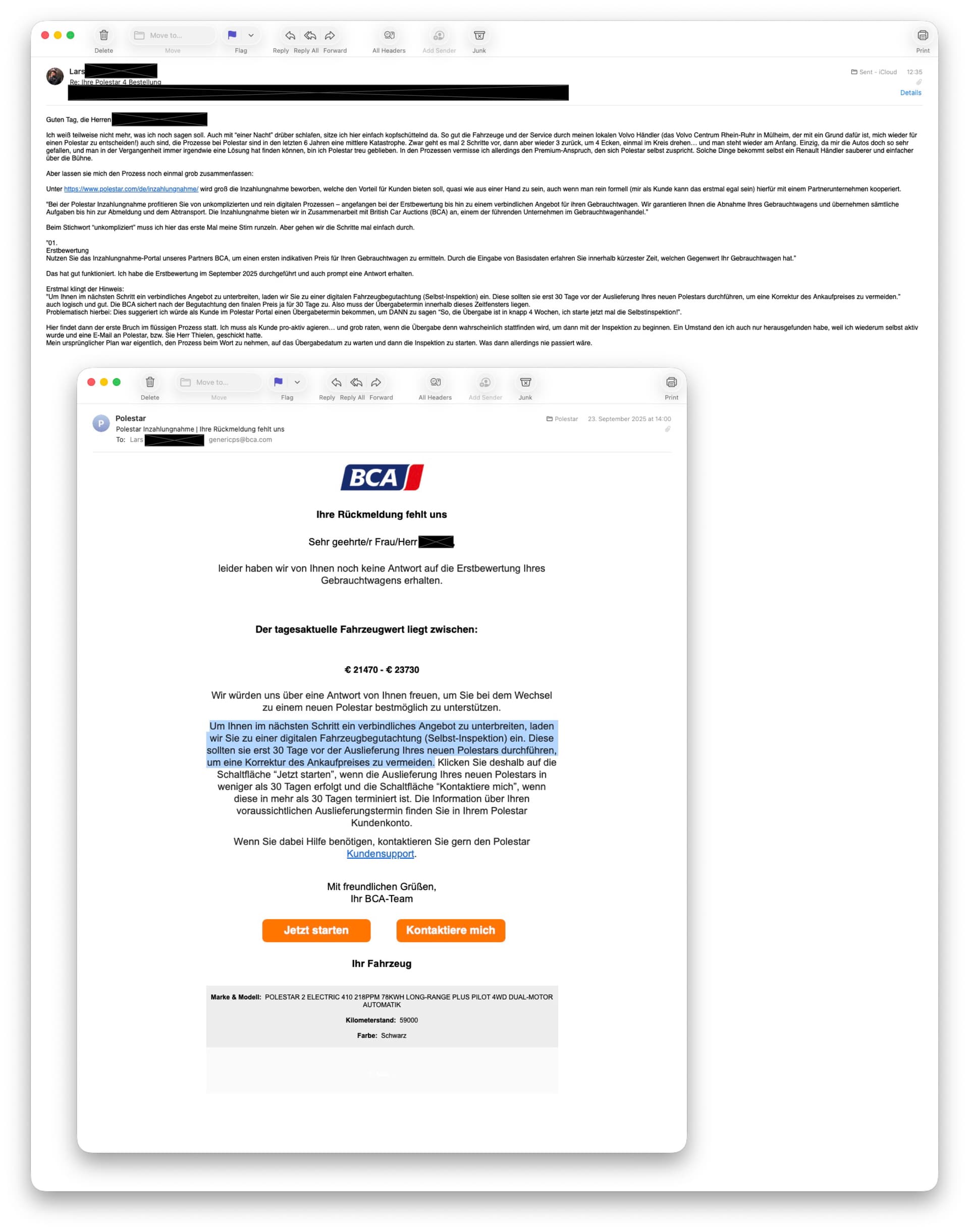 Polestar 4 bestellt. Polestar 2 wird in Zahlung gegeben. Alles geregelt. Alles geklärt. Bis auf den Hammer jetzt: