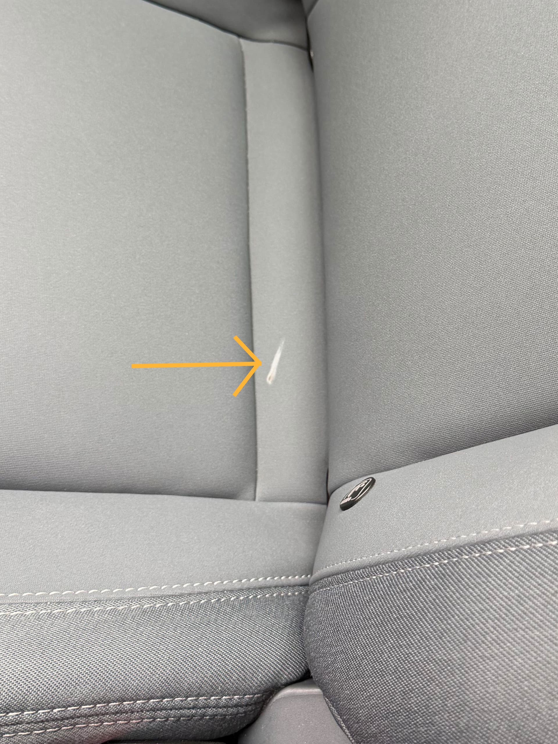 Bei mir ist plötzlich ein merkwürdiger Fleck auf der Sitzfläche des Beifahrersitzes aufgetaucht. Da er sich nach einem Reinigungsversuch nicht entfernen ließ, habe ich mal genauer hingeschaut und festgestellt, dass es sich vielleicht um eine »geschmolzene« Stelle handeln könnte.