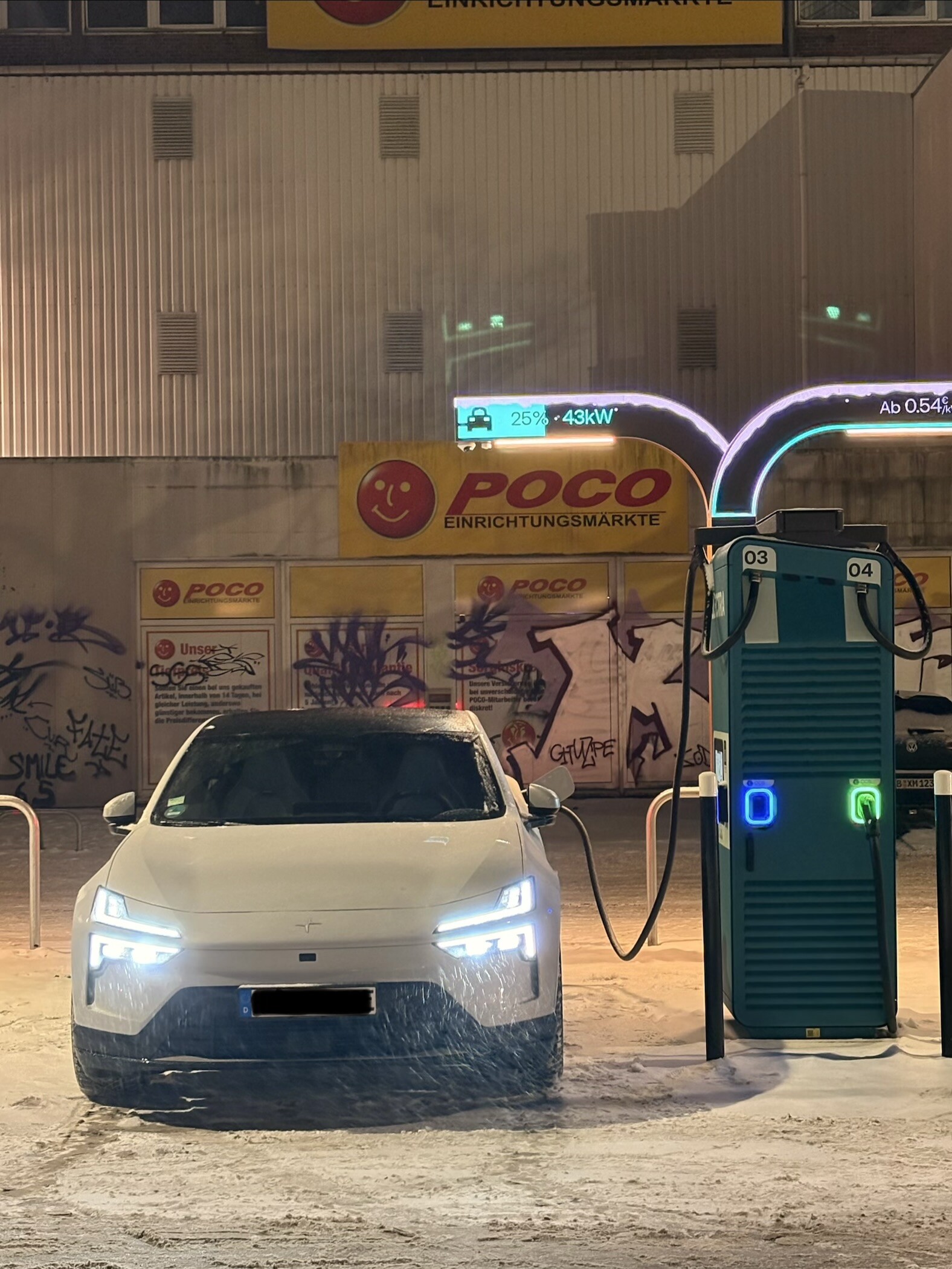 Ich habe mal das Szenario mit eiskaltem Akku bei -3 Grad direkt zum HPC, ca 20min Anfahrt, VK hat direkt gestartet, Ergebnis seht selber, 24%-80% 42min. Das ist definitiv kein gutes Ergebnis, aber unter den gegebenen Bedingungen irgendwie verständlich
