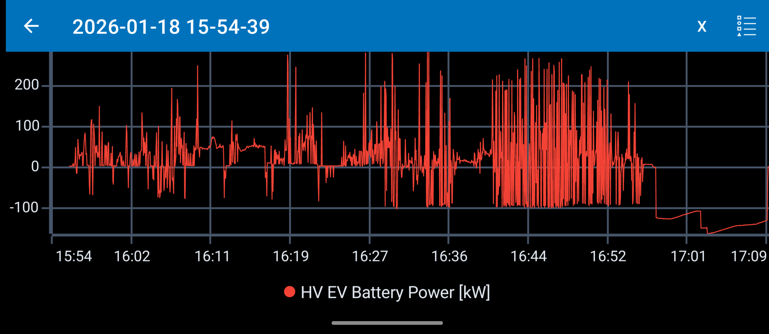 genau mein Punkt, der Akku erwärmt sich durchs Beschleunigen kontinuierlich, die Kurven von olschw zeigen m.E. NICHT, daß die Batterie durch die VK angewärmt wird - selbst wenn die blaue Kurve der „inlet coolant“ hoch geht, sieht man im nachfolgenden Anstieg keine Änderung - die rote Kurve steigt nachfolgend nicht schneller an, sprich es gibt keine Korrelation zwischen inlet coolant und Batterie Temperatur.