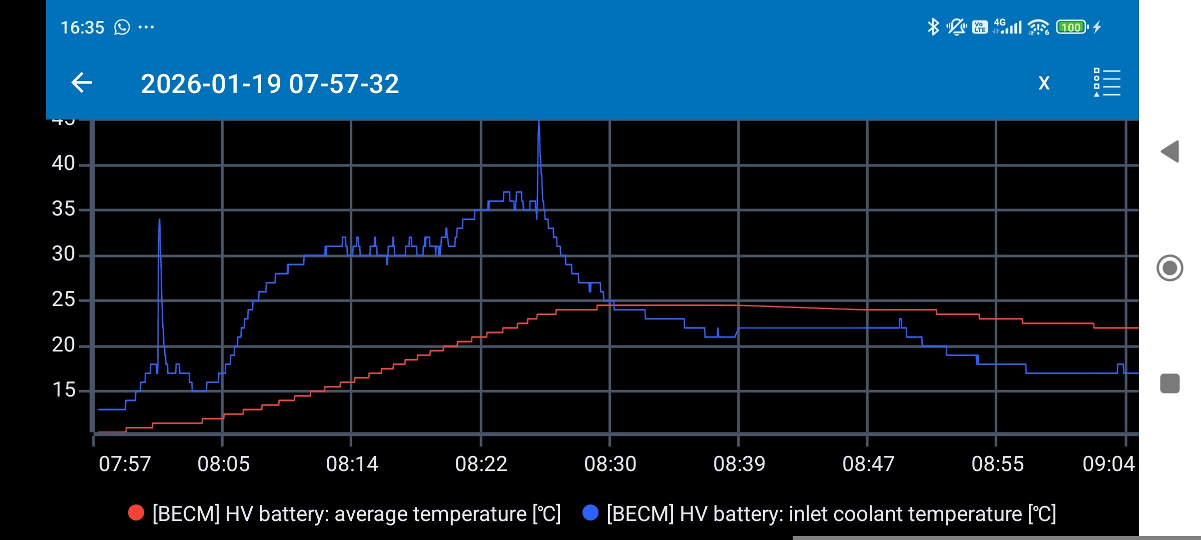 @MichaBerlin mit Sicherheit hängt die Temperatur der Kühlflüssigkeit mit der VK zusammen. Wenn tatsächlich geheizt wird, geht auch die Temperatur der Batterie hoch. Allerdings recht langsam. Wahrscheinlich ist die Heizung unterdimensioniert für die große Batterie.