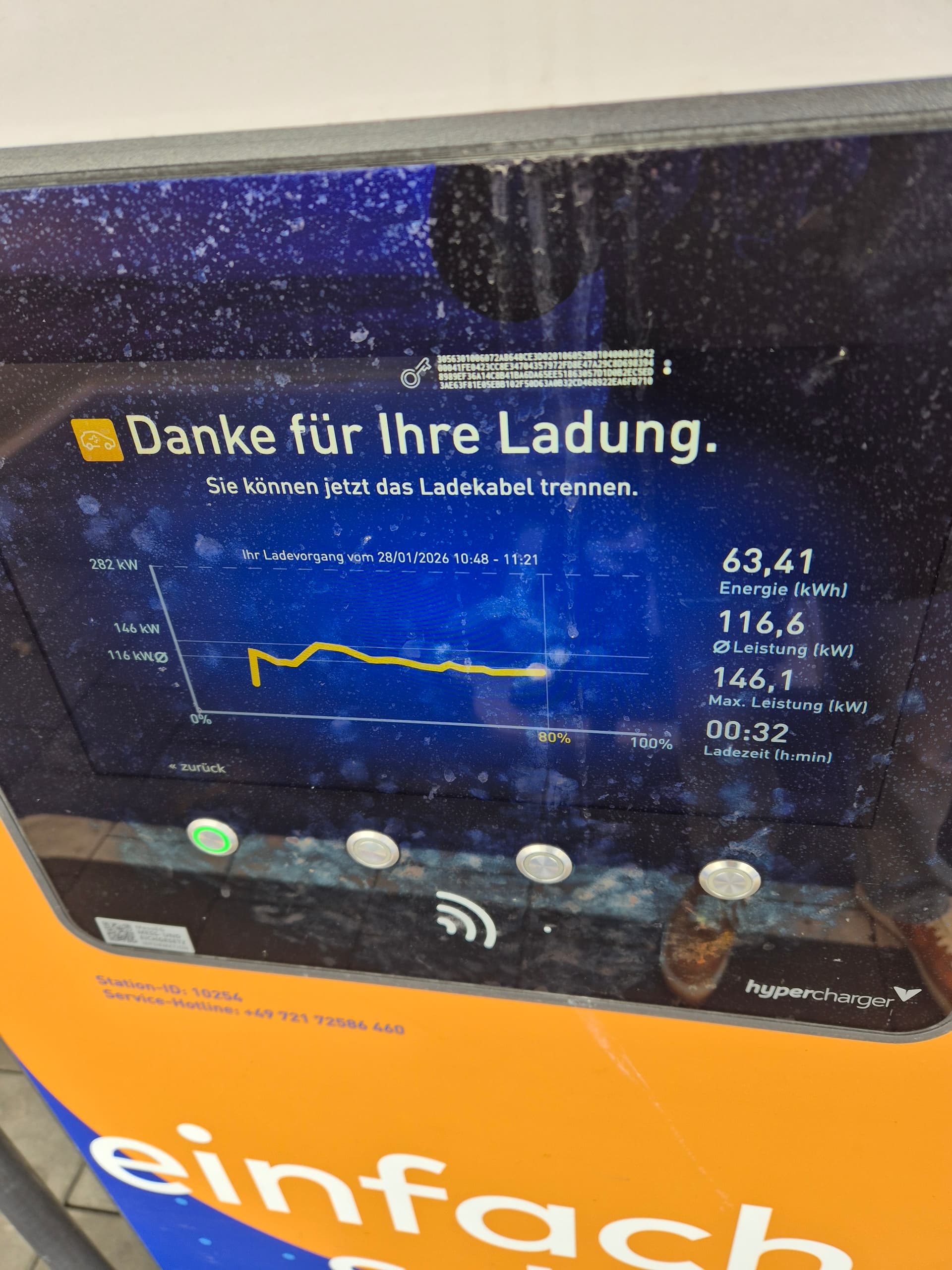 Heute an einer 100KW EON Ladesäule geparkt. Ladung spontan ohne GM, also auch ohne VK.