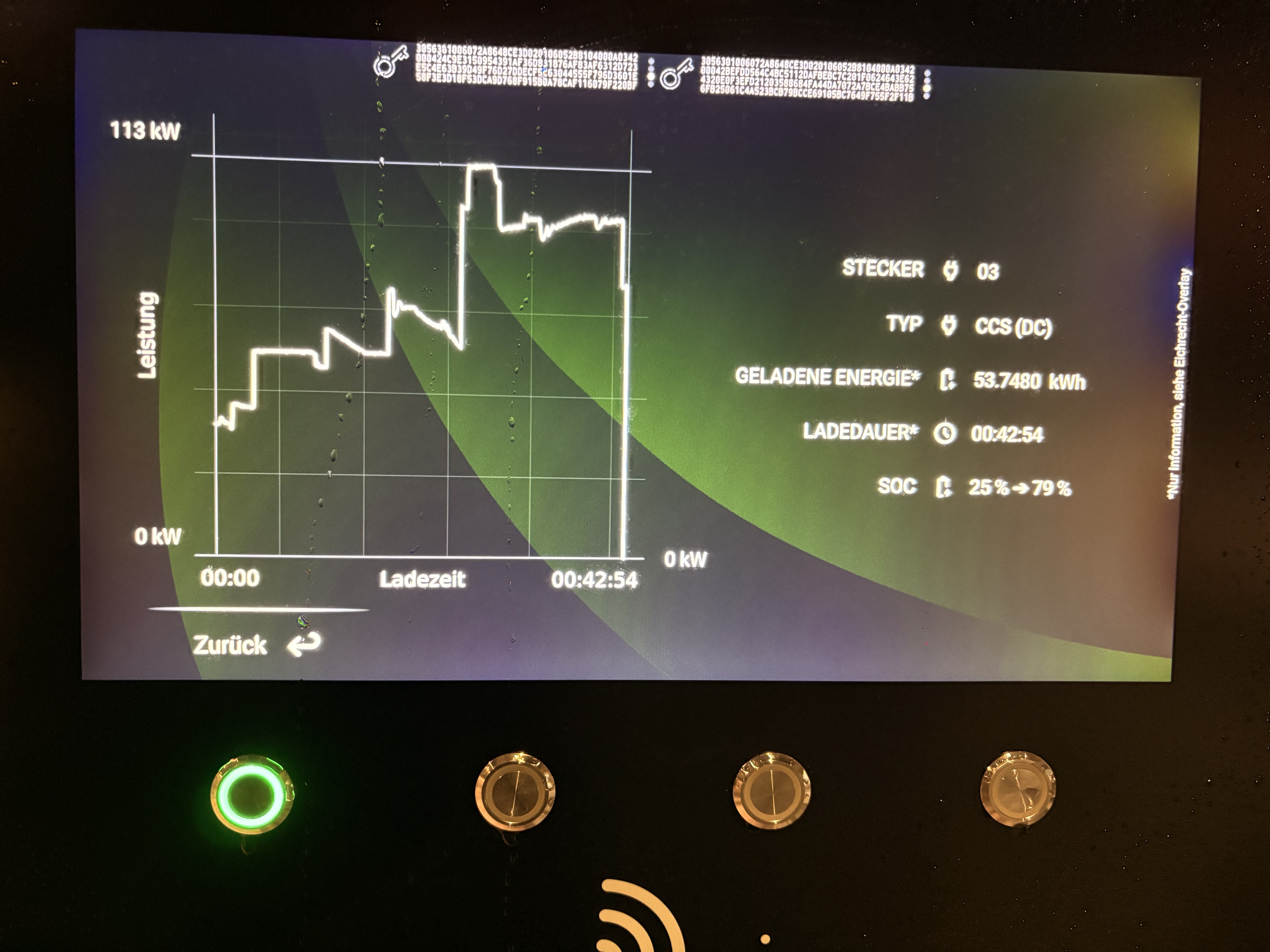 Ich lade bei den momentanen Temperaturen noch mit 32kW bis maximal 42kW, trotz Vorkonditionierung und einigen km Anfahrtsweg zur Schnellladestation.