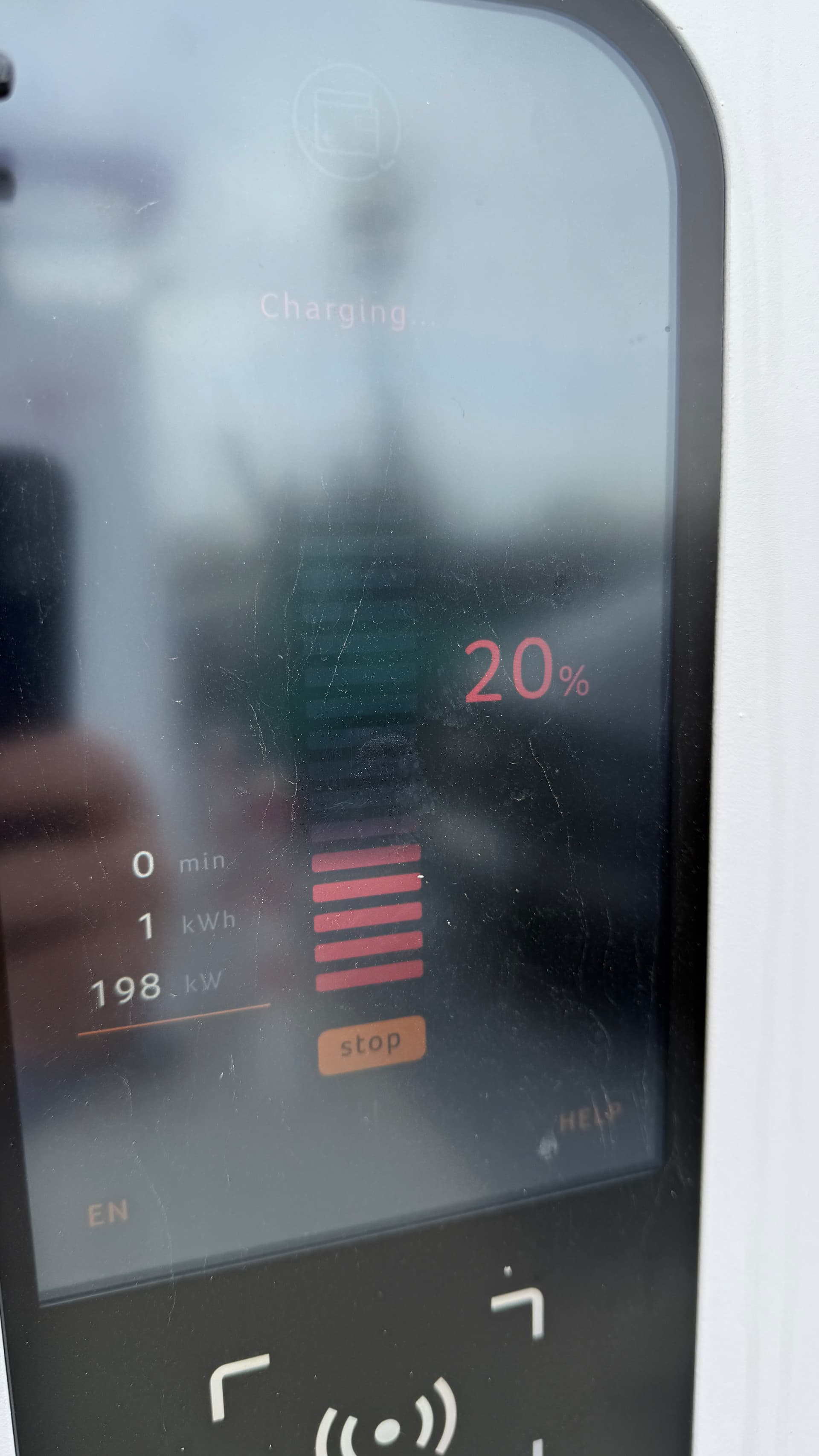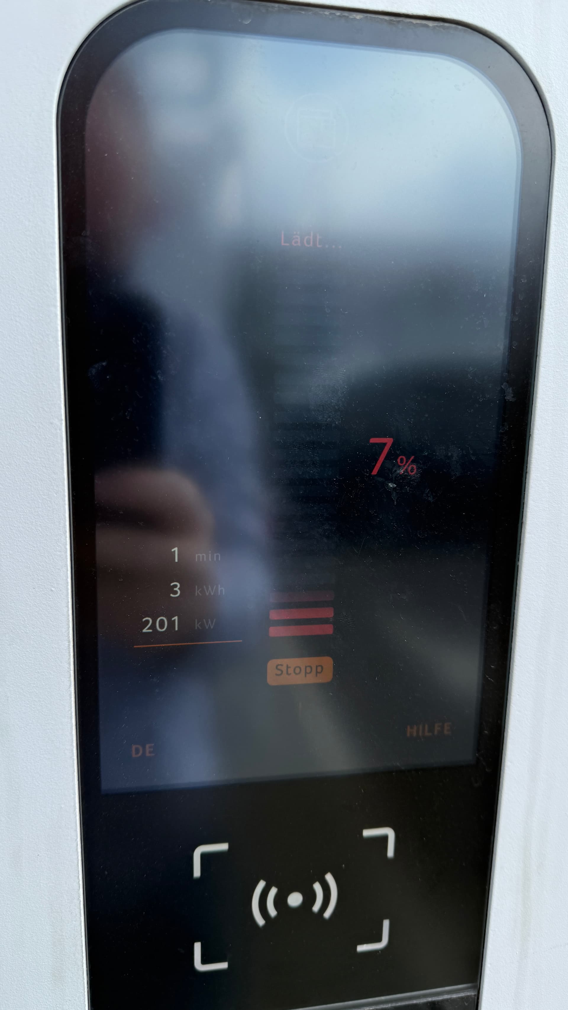Auto stand für mehrere Stunden an einem schwachen AC-Lader, Außentemperatur ca. 3 Grad.