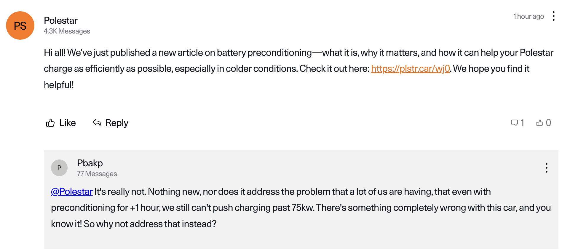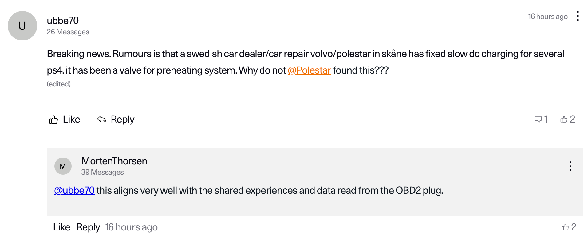 Im Parallel-Thread in der Polestar Community hat Polestar auch auf den Artikel hingewiesen: