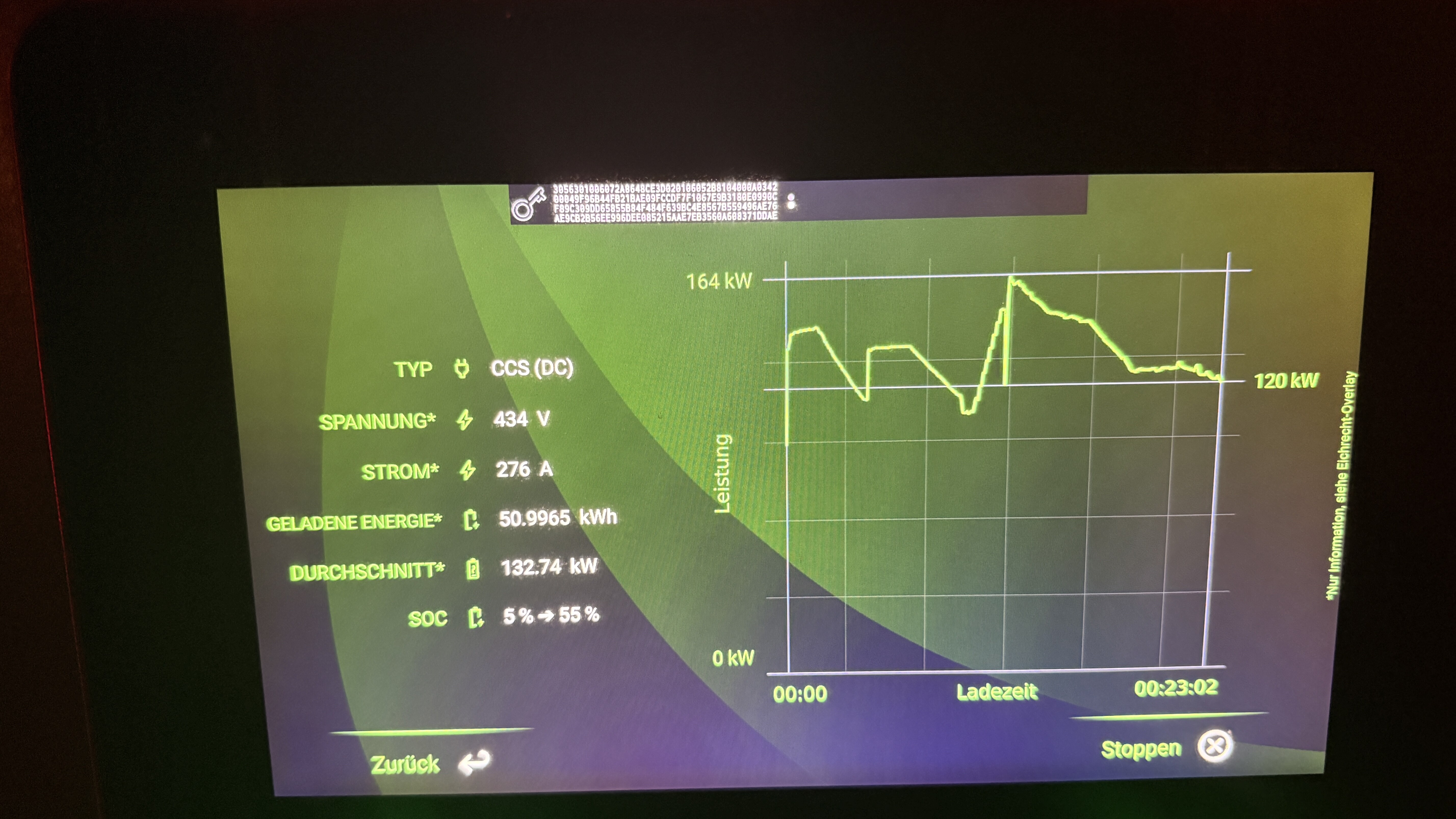 Ich war heute am gleichen Charger wie am Donnerstag. Heute habe ich knapp 197kW gesehen (SoC etwa 15% und begonnen bei 13%).