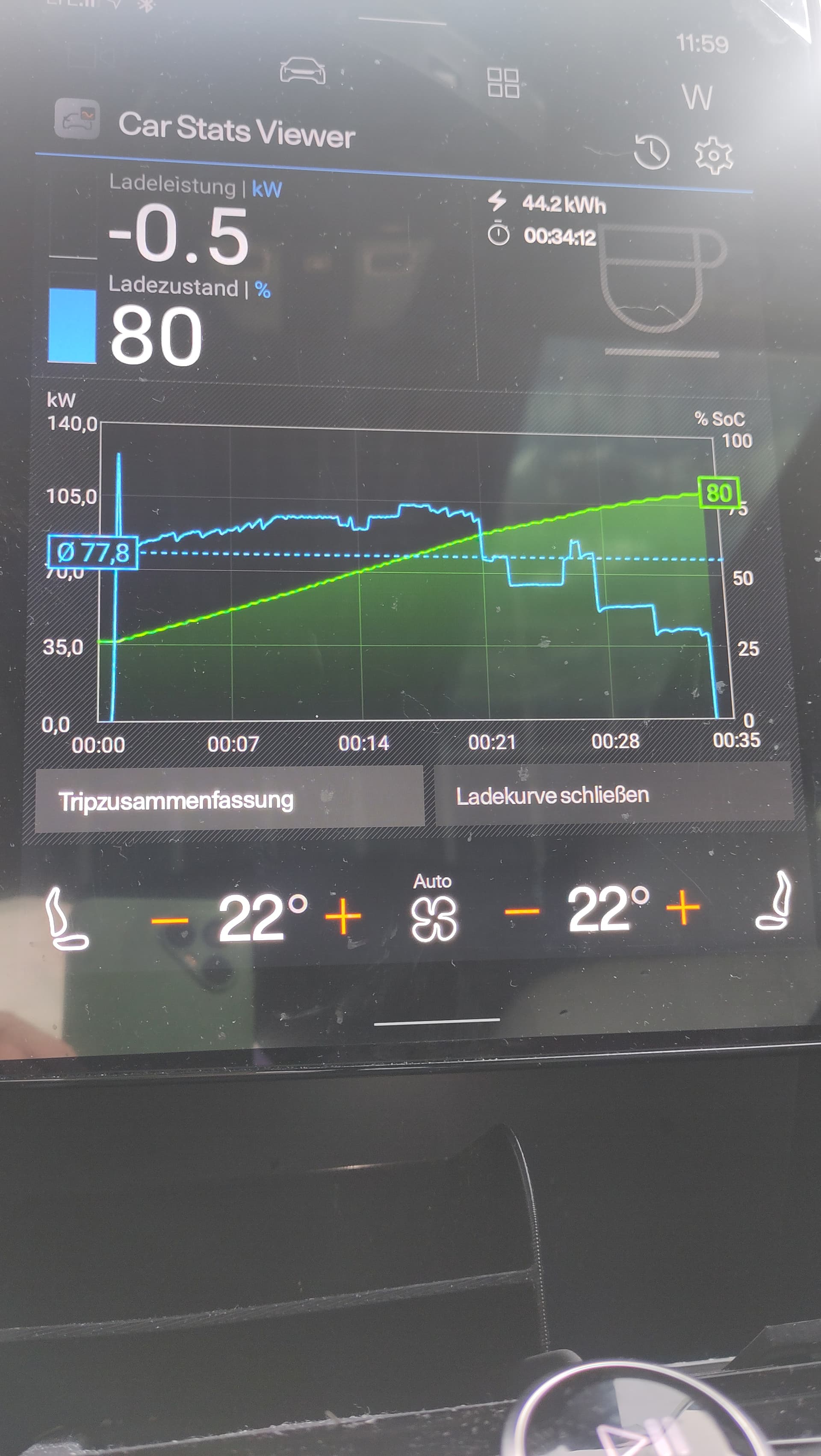 Kürzlich hatte ich folgende Ladekurve auf meinem CSV Display im PS2 LRDM MY24, und die finde ich unter diesen Bedingungen eigentlich sehr OK: