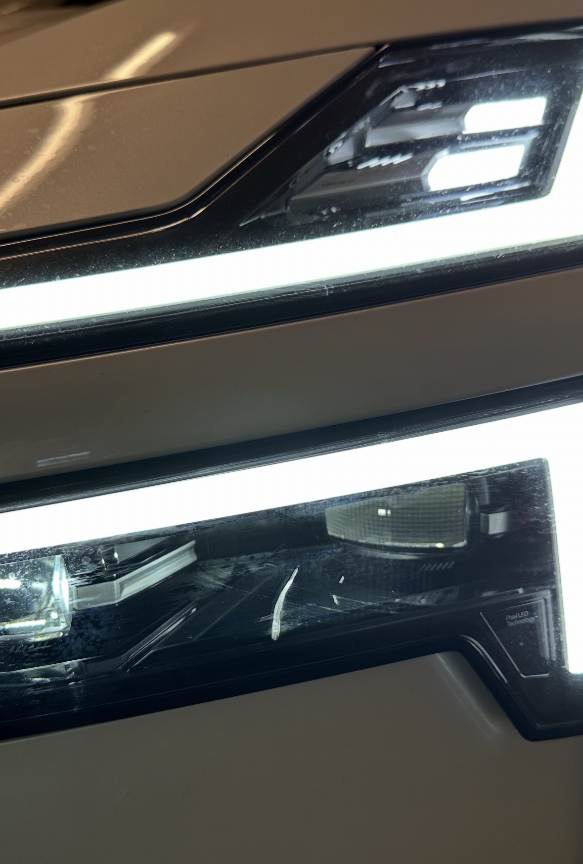 In diesem Winter fliegen wieder Eisplatten von den LKW’s. Eine davon zerschellte die Woche auf unserem P4 und verewigte sich im Scheinwerfer und Stoßstange. Hätte nie gedacht, dass der Kunststoff des P4 Scheinwerfers so weich ist.