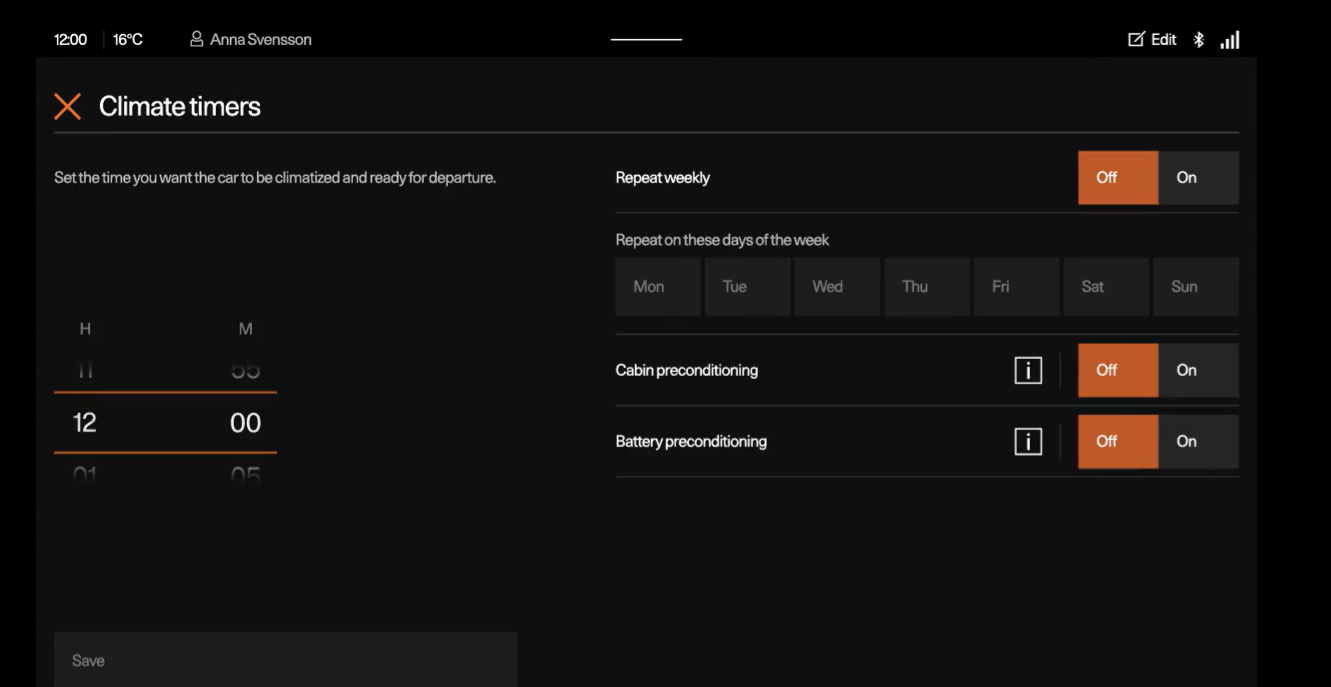 Eine Frage, die ich mir auch stelle: Warum ist die Vorkonditionierung im Auto einstellbar, aber in der App nicht? Außerdem nervt mich, dass ich beim Timer nicht entscheiden kann, ob Lenkrad- und/oder Sitzheizung an oder aus sein sollen. Das entscheidet er mWn aufgrund der fehlerhaften Außentemperatur.