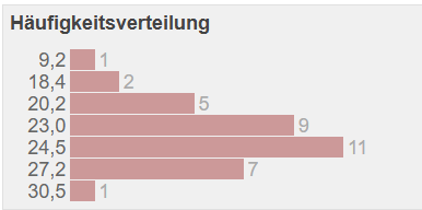 Histogramm beinhaltet 36 Fahrzeuge/user. Es ergibt sich keine Signifikanz bei Einschränkung des MY.