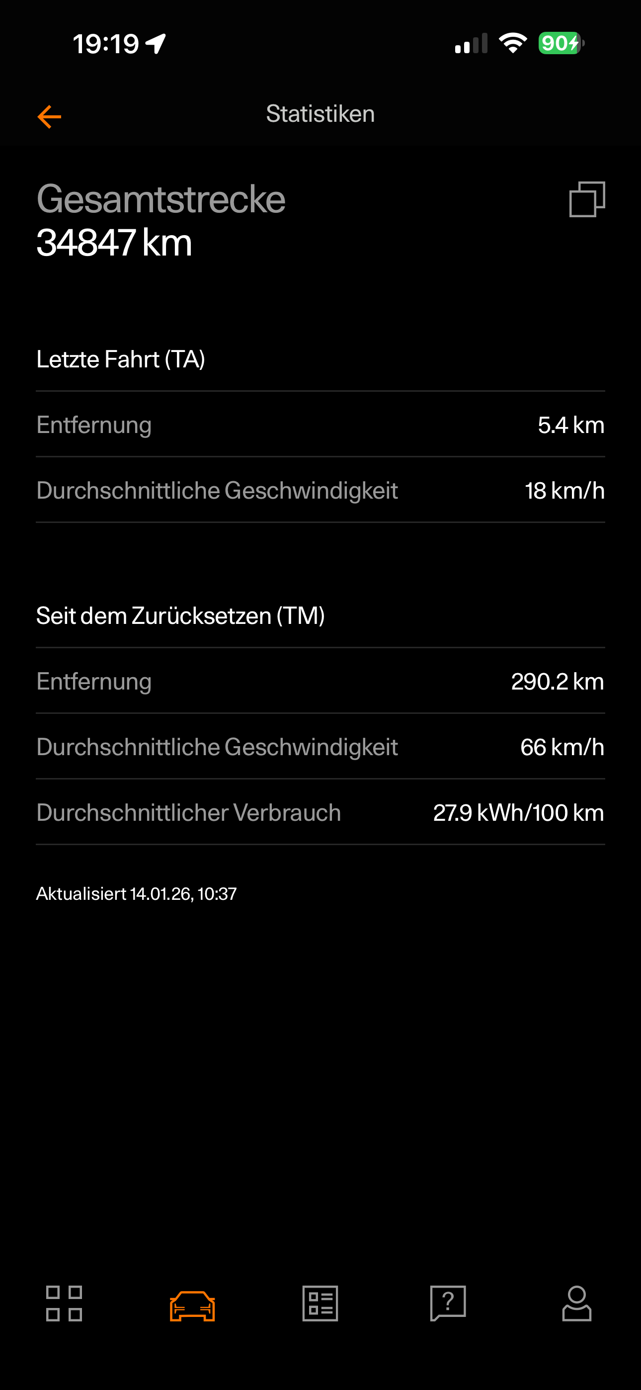 Ich protokolliere seit Anschaffung meines LRDM 2025er penibel alle geladenen kWh (anhand Abrechnungen der Ladevorgänge). Kilometer ergeben sich aus ODO, da ich das Auto quasi mit 0 Kilometern übernommen habe.