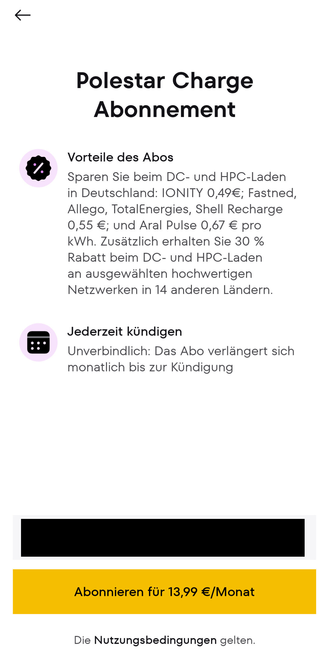 Mit dem Abo selber habe ich aktuell keine Erfahrung, aber gestern habe ich an einer EweGo Säule für 52ct ohne jegliches Abo über die EweGo-App geladen. Ich mach mir immer mal wieder den Spaß und schaue nach, was mit Polestar Charge da stehen würde. Leckere 96ct (in Worten: SECHSUNDNEUNZIG CENT).