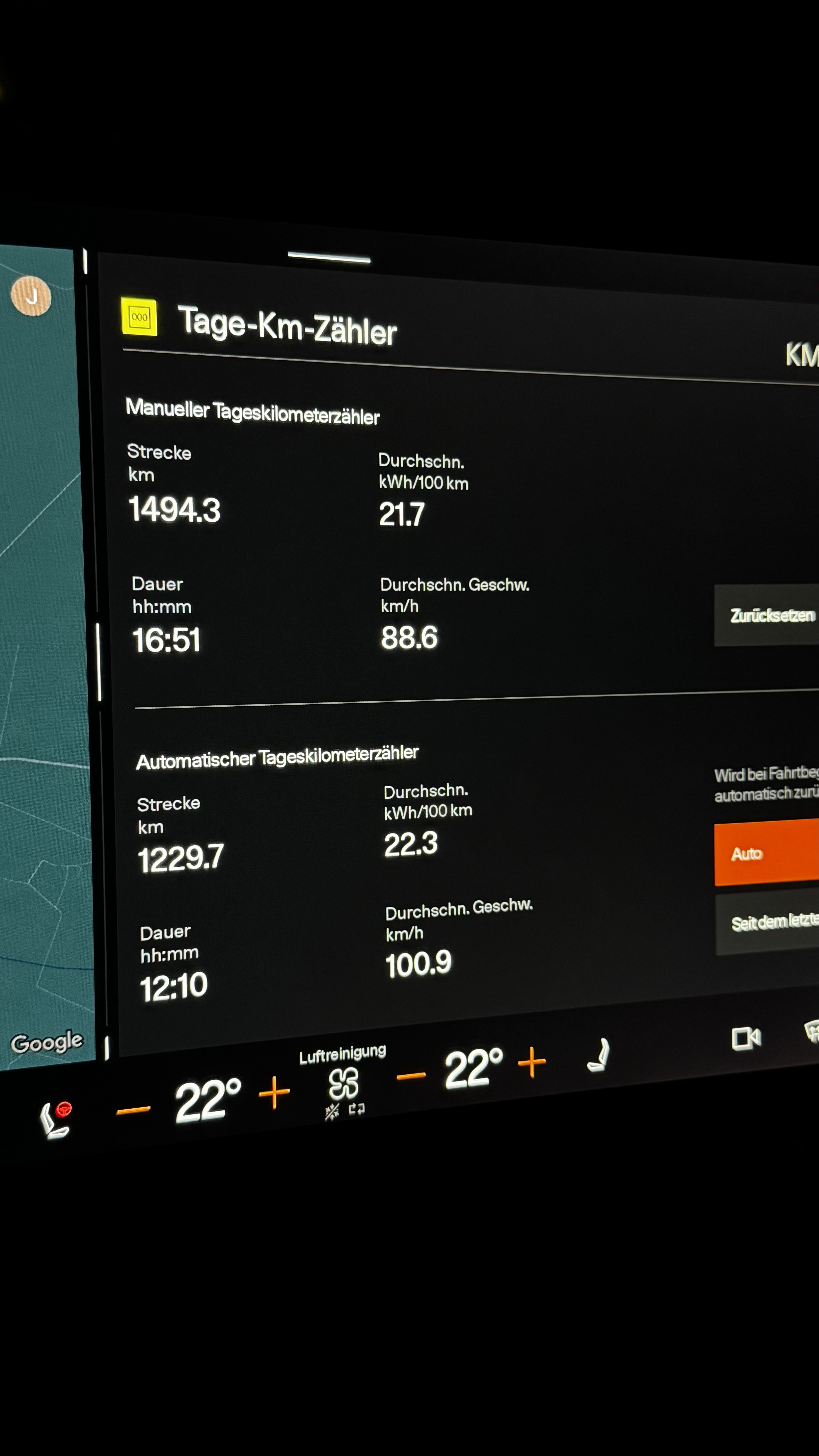 Auf der Rückfahrt war es ebenfalls großteils frei auf der Autobahn, da hatte ich dann am Ende einen Gesamtverbrauch von 27,5kwh/100km… war aber auf den 90km auch viel 180km/h… fand ich jetzt auch viel, aber dacht mir so, Kraft kommt von Kraftstoff, bei so hohen Geschwindigkeiten will ich mal nicht meckern. Zudem ist wird es mit zunehmender Geschwindigkeit glaube auch schwerer zu vergleichen.