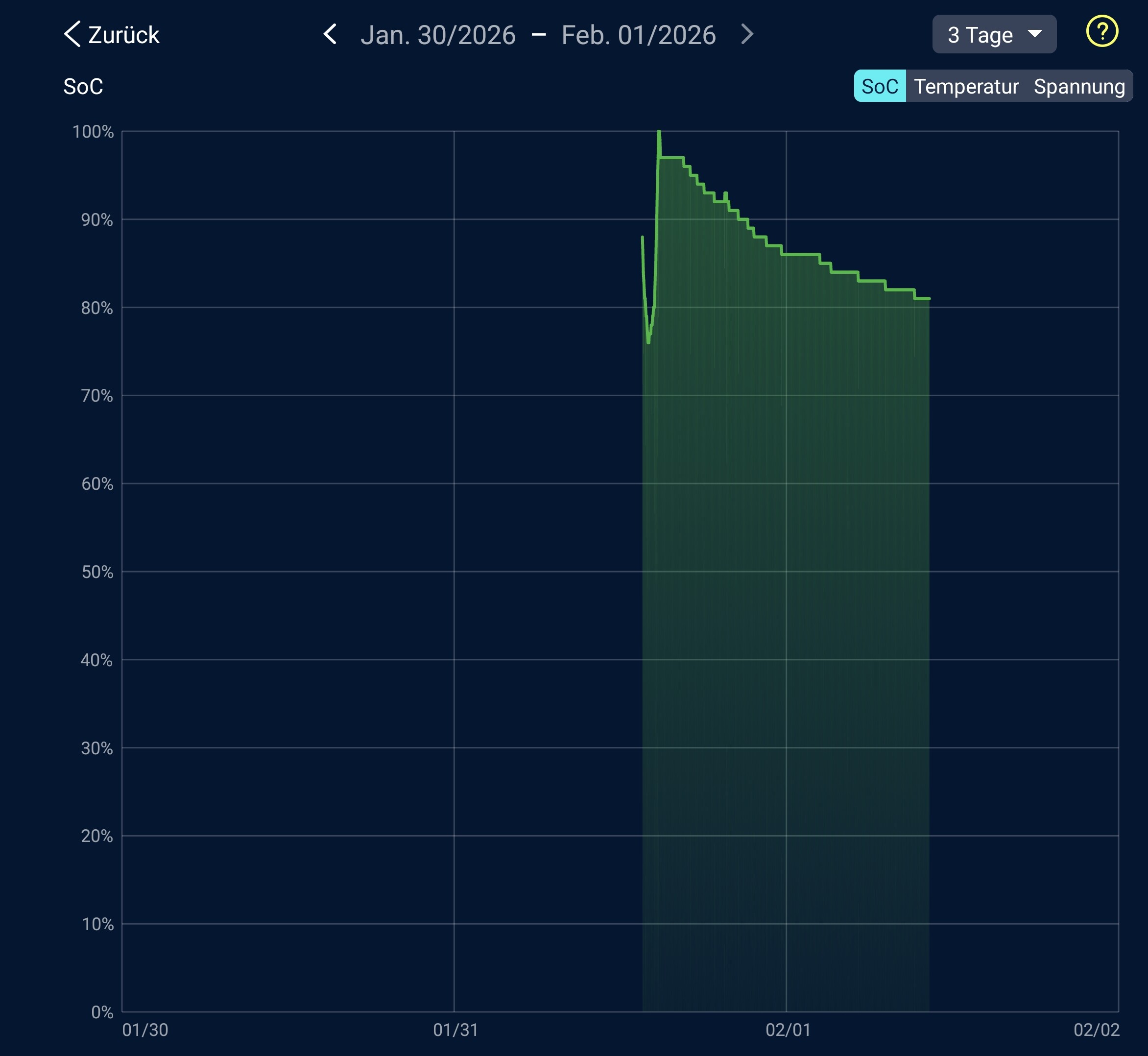 Ich habe nun mal den Verlauf des SoCs der neuen Batterie verfolgt und bin etwas erstaunt über den hohen Verbrauch.