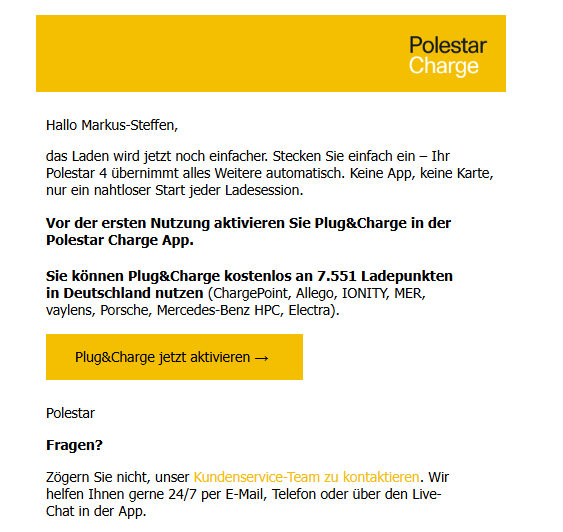 Ich lese das so, dass das Laden mit Plug & Charge kostenfrei ist. Bin ich da alleine?