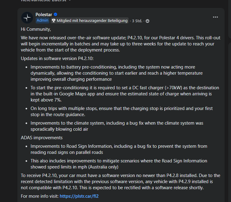 Naja es schreibt ja Polestar selbst, in Ihrer Facebook Gruppe. Daher scheint das schon so zu stimmen.