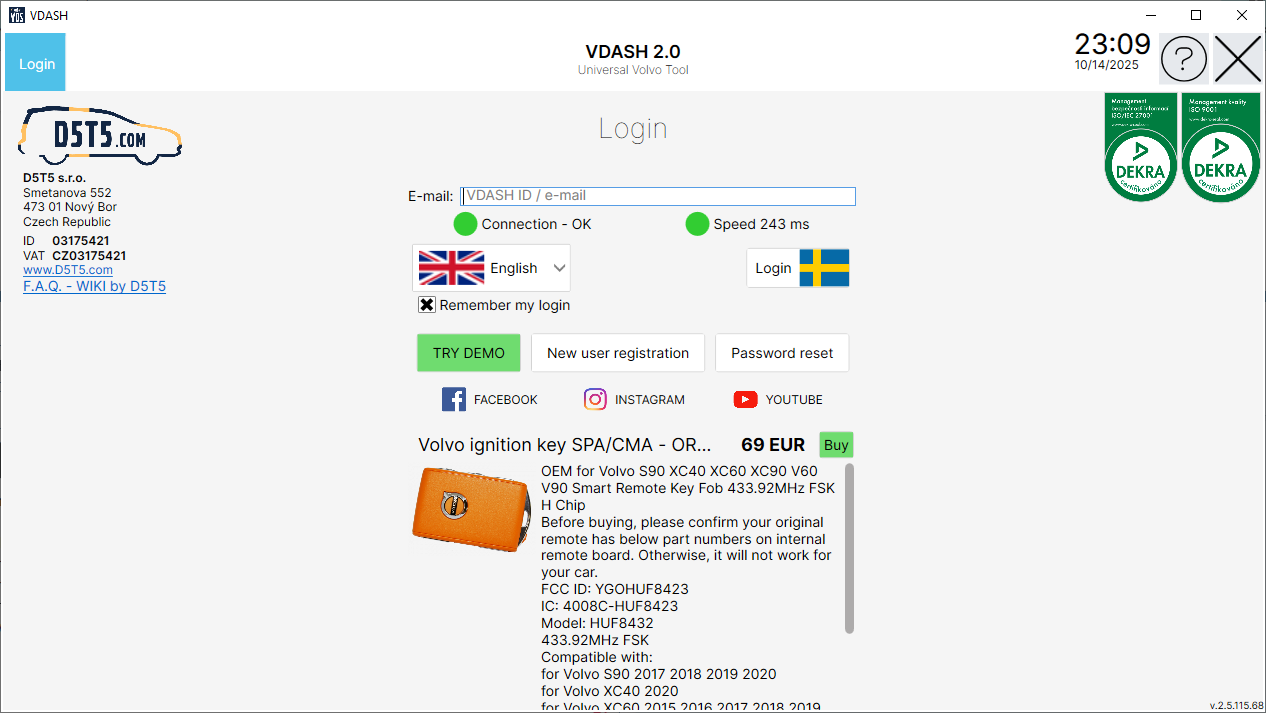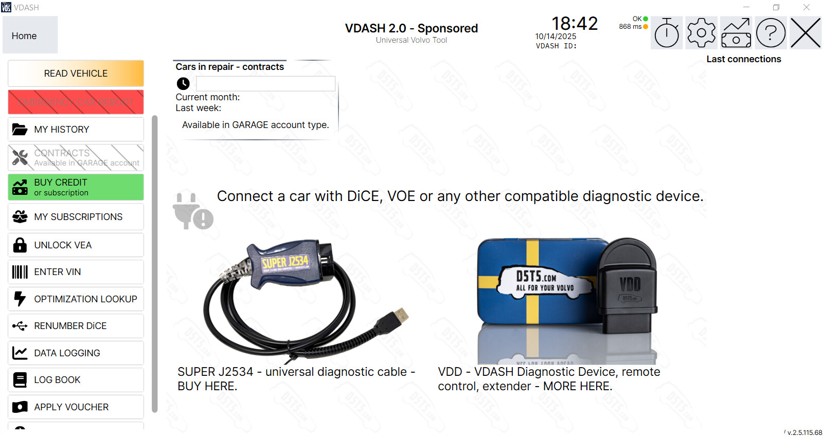 Die Software VDASH ist eine Entwicklung eines Drittanbieters, die originale Software von Volvo heißt VIDA. Volvo bietet VIDA nur für Werkstätten an, zumindest in DE und EU. In den USA gibt es aufgrund Right to Repair auch Zugang für Privatpersonen, dort kostet ein 3 Tage Zugang aber irgendwas um die 100 €.