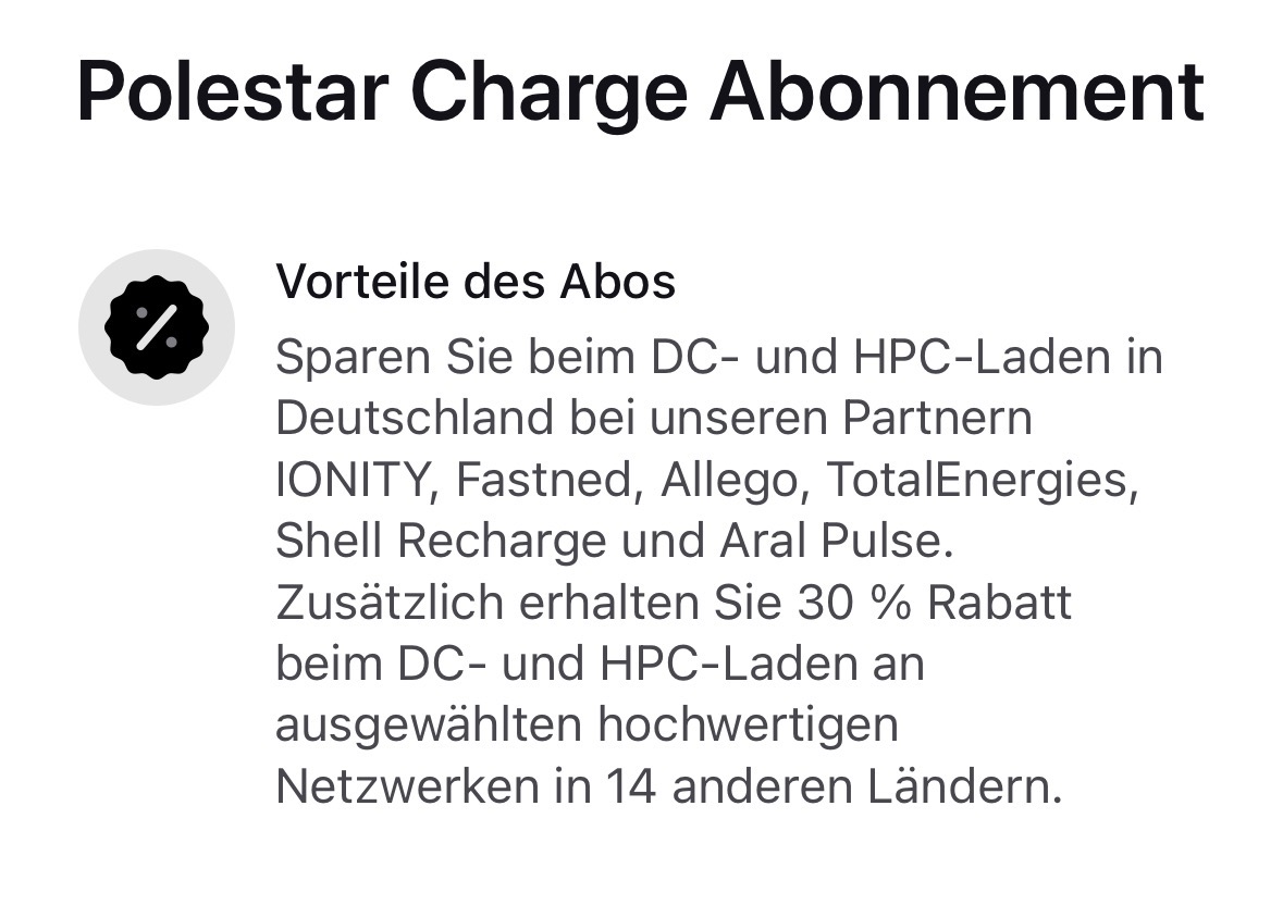 Das Laden bei Tesla ist über die Tesla-App auch ohne Abo günstiger als über Polestar Charge. Gleiches gilt bei den meisten Fahrstromanbietern, da die 30% ja auf die Standard-Roaming-Preise gelten. Aber manchmal findet man bei Plugsurfing auch Schnäppchen.