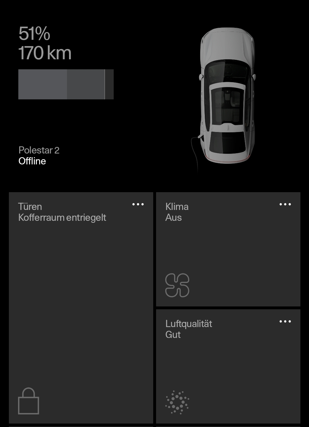 Ich kann es nur noch mit dem Notschlüssel entriegeln, die App zeigt mehrere Fehlermeldungen an und das Fahrzeug scheint komplett offline zu sein.