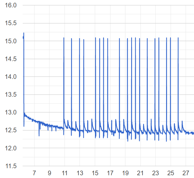 Völlig richtig - die Aufzeichnung ist von einer unkalibrierten, auf die Schnelle zusammengebauten Schaltung mit Spannungsteiler - die Umrechnung auf Volt ist nur theoretisch nach den Widerstandswerten und hat sicher eine Abweichung.