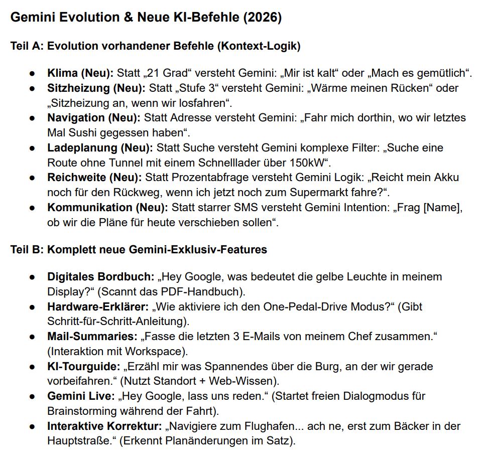 Also angeblich, laut Gemini selbst… was ja immer mit mehr als einer Prise Salz gesehen werden sollte, ist das OTA 4.2.13 der Grundstein für die neue Google-App version für 2026 die auch die schnittstelle zwischen Gemini und dem Auto beinhalten soll. Der Rollout wird aber Primär von Google gemacht und nicht vom Fahrzeughersteller, dieser passt mit dem OTA vermutlich nur die voraussetzungen für Gemini an. Es liegt Programmiertechnisch also bei Googles kreativität mit den APIs von Android Automotive zum CANBus des Wagens die vorhandenen Daten in halbwegs Sinnige anfragen umzubauen.