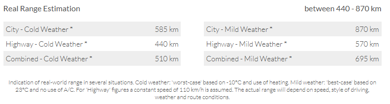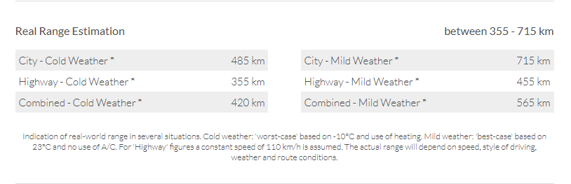 Oder spezifischer: Wenn man unter allen praxisnahen Szenarien (z.B. jetzt im Winter bei der Kälte) von 90% bis runter auf 10% 400km schafft.