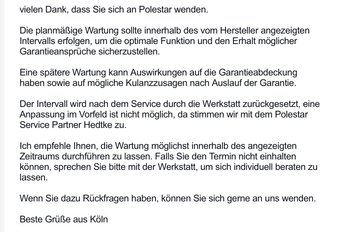 Mein Polestar 4 wurde am 25.11.24 übergeben. Nun habe ich noch 160 Tage Restlaufzeit laut Anzeige im Fahrzeug. Es heißt doch 24 Monate oder 30.000 km. Aktuell habe ich 8000 Km gefahren. Das würde bedeuten ich muss nach1,5 Jahren zur Wartung.