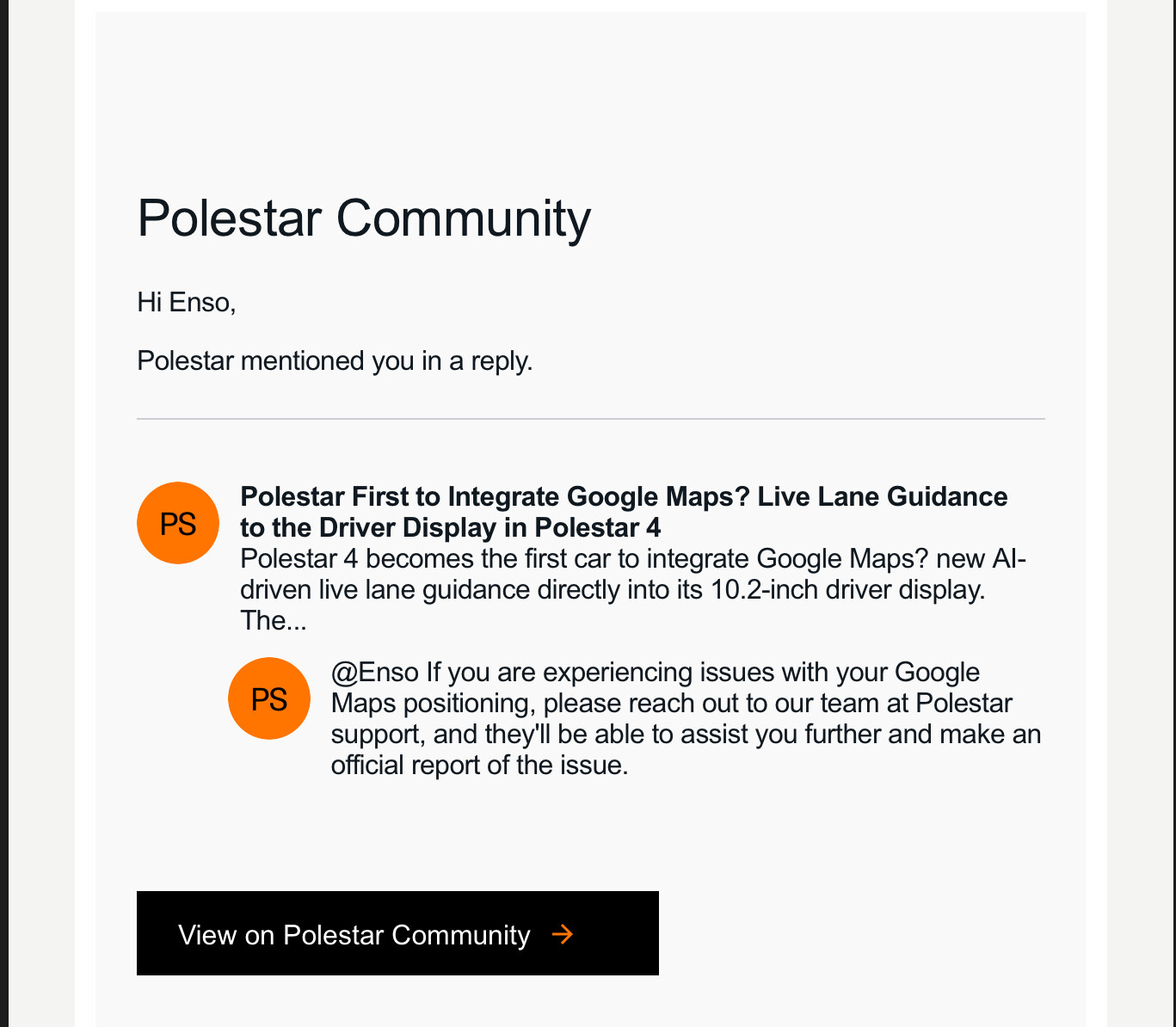 Bezüglich der Standortgenauigkeit in Google Maps kann es in Einzelfällen vorkommen, dass die Lokalisierung nach dem Fahrzeugstart verzögert oder ungenau ist. Ein vollständiger Neustart des Infotainmentsystems kann helfen, die GPS-Verbindung zu stabilisieren. Beim Polestar 4 führen Sie diesen durch, indem Sie die beiden unteren Tasten am Lenkrad etwa 20 Sekunden lang gedrückt halten, bis der Bildschirm schwarz wird und das System neu startet. Nach dem Neustart prüfen Sie bitte, ob die Standortgenauigkeit schneller und zuverlässiger hergestellt wird.