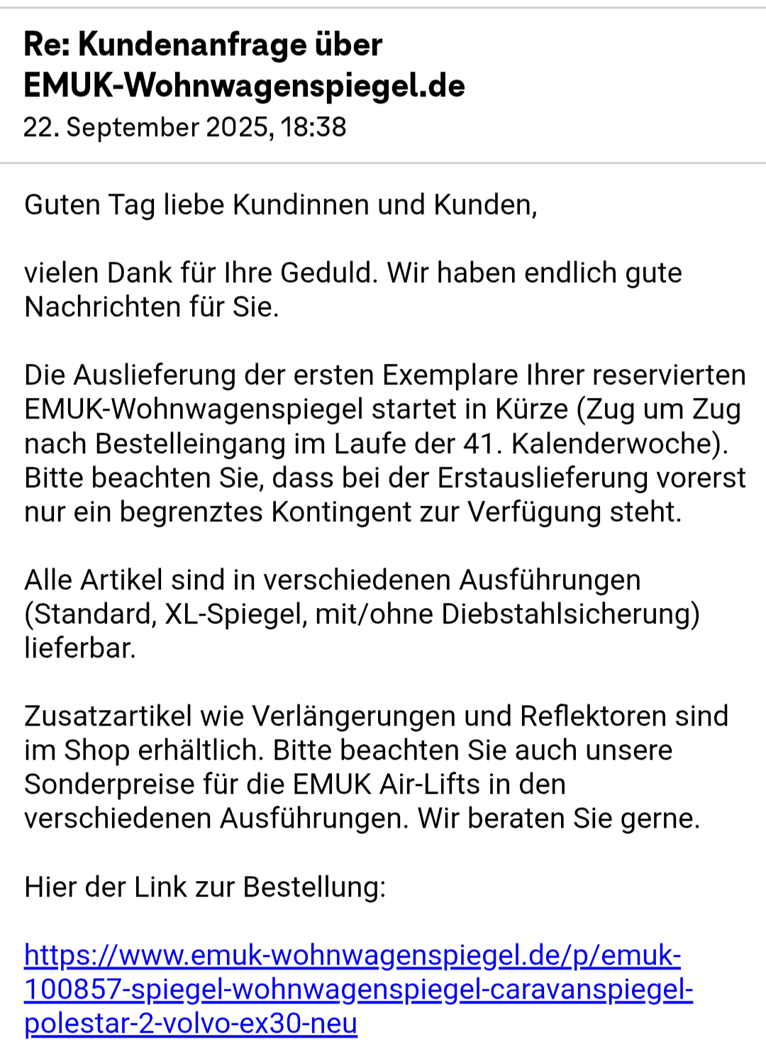 Habe bei euch Wohnwagenspiegel für den Polestar 2 von EMUK gefunden.